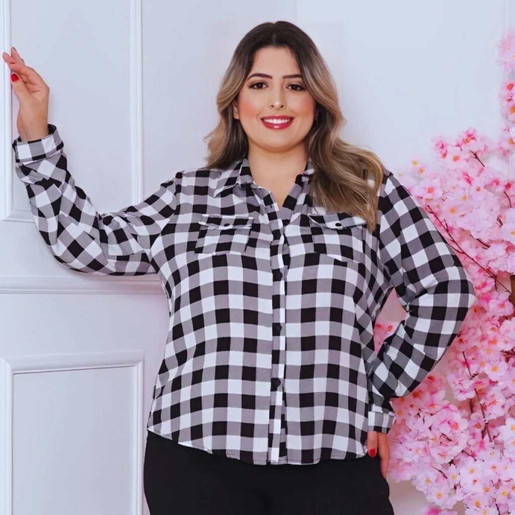 A camisa xadrez feminina Plus Size de manga longa é uma peça elegante e versátil, projetada para proporcionar conforto e estilo para mulheres que apreciam a moda inclusiva. Fabricada com 100% de viscose, essa camisa oferece uma sensação suave e fluída ao toque, garantindo conforto ao longo do dia.